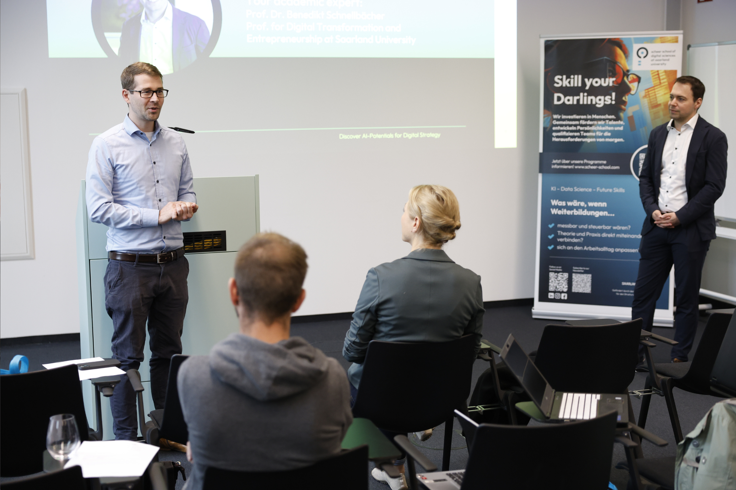 Mit einem leisen Summen öffnen sich die Glastüren zum Seminarraum. Es ist früher Morgen, doch schon jetzt liegt eine besondere Energie in der Luft. Teilnehmende betreten den Raum, suchen sich ihre Plätze, erste Gespräche entstehen wie von selbst. Erwartungen, Vorkenntnisse, Ideen – alles mischt sich zu einer lebendigen Atmosphäre. Heute startet eine neue Runde von Discover AI Potentials for Digital Strategy.