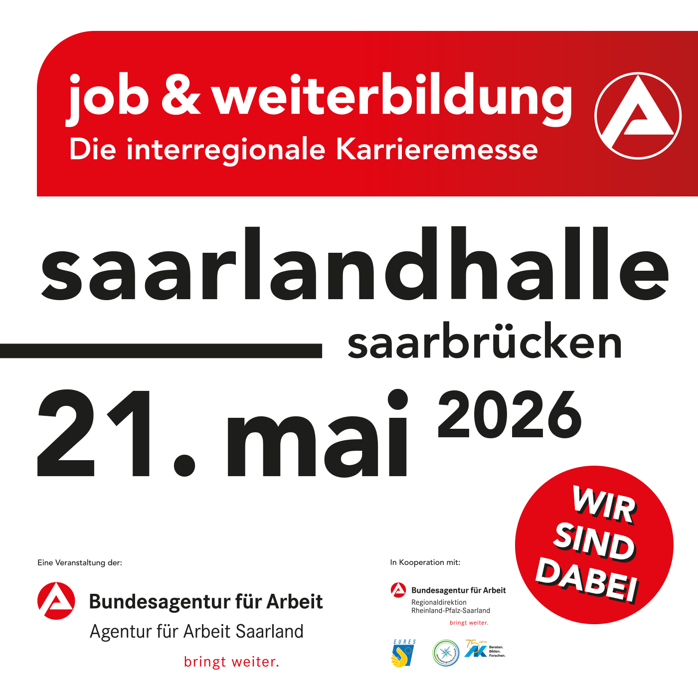 The Job & Training Fair in Saarbrücken is an interregional careers fair for the greater SaarLorLux region and is a central meeting point for anyone looking for a new job or suitable further training opportunities. With over 100 companies and more than 40 training providers, the fair offers direct application opportunities, practical insights and a wide range of career, qualification and professional development offers. The program is complemented by specialist presentations, advice and numerous opportunities for personal exchange.